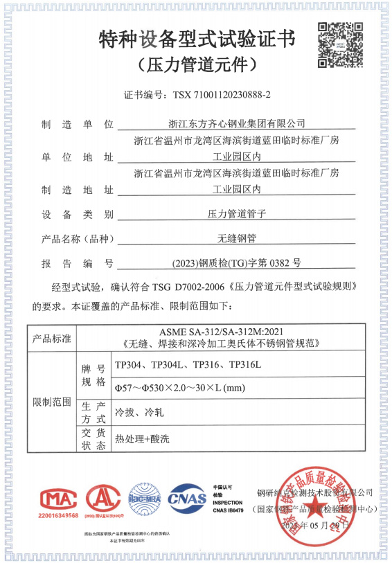 浙江東方齊心以不銹鋼系列產品為主導,品種有不銹鋼管、奧氏體不銹鋼管、高溫合金鋼管、雙相不銹鋼管、鎳基合金管、冷凝器用管、U形管、核電管、不銹鋼管件、法蘭、閥門等。規格有6-2020x0.8-60mm,Ф16-25長度可達33m。公司擁有精密制造鋼管的各類機械設備25臺(套),其中各類冷軋管機15臺, 冷拔機10臺,天然氣熱處理爐2套。